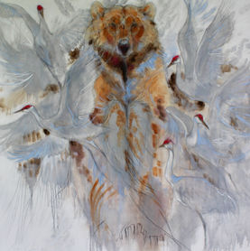 She renders her creations primarily with oil pigment and the organic and confident presence of graphite and charcoal. A bold use of color, powerful yet simple design and an ephemeral quality in her use of medium influenced by years of painting strictly in watercolor has given Amy’s work a highly recognizable and unique signature quality. A unique distinction in the genre as well, is her limited use of reference, relying on memory and creative gesture in her subjects gives her animals a very distinct non-photographic brand. Her work dances across the often thick line between realism and abstraction, traditional and contemporary and because of this, appeals to a very broad clientele and appeals to both the established “old guard” of wildlife art, and the growing contemporary genre.