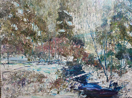 Working on canvas directly with his palette knife, Collins spontaneously manipulates his oil paints in a topographical impasto. Using vibrant and warm colors, Troy draws inspiration from the regional landscape of Montana and Wyoming.